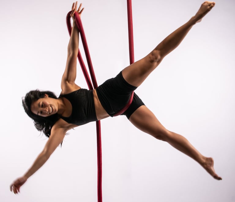 Jessica Leong is an aerialist, performer, and coach from San Francisco, California, now based in Dublin, Ireland. With over 8 years of aerial training and 6+ years of teaching experience, she coaches silks and rope from beginner through advanced levels, blending strong technical foundations with creativity, musicality, and performance.